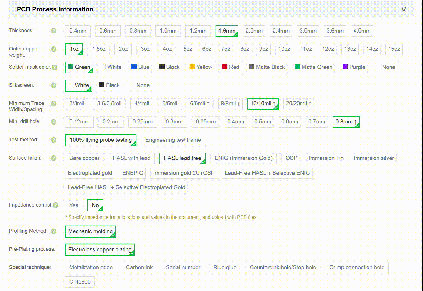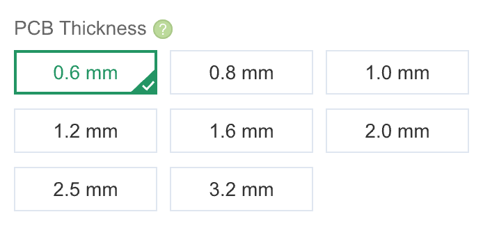 Default parameters are preselected. You may adjust them as needed (e.g., PCB Thickness)